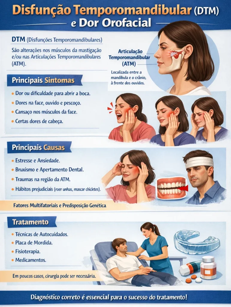 Quando essas estruturas não funcionam adequadamente, podem surgir dor, limitação de movimento e outros desconfortos, caracterizando a DTM.